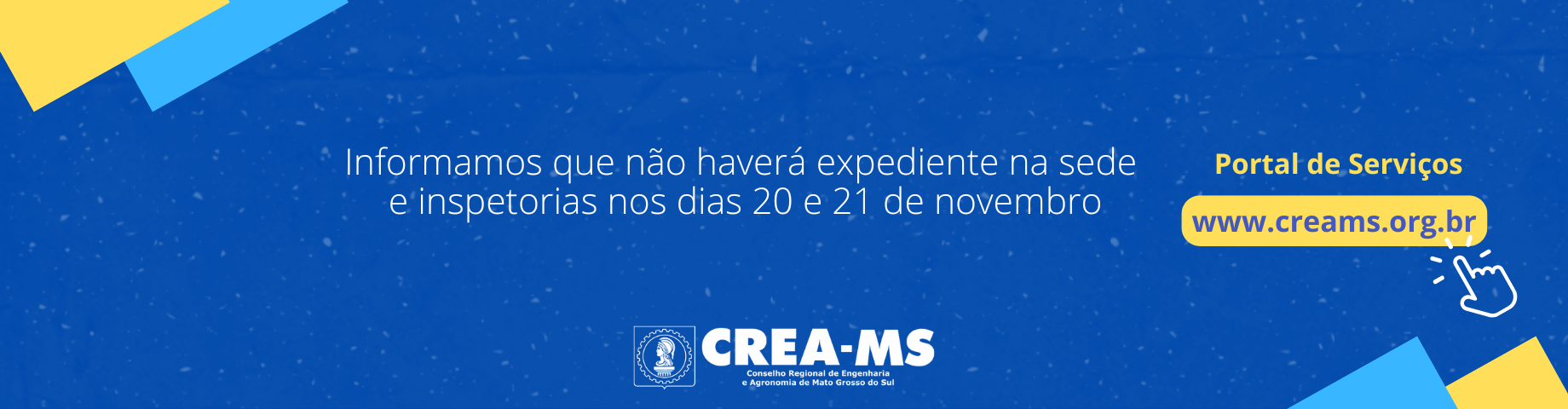 Atendimento do Crea-MS será encerrado às 17h nesta quarta-feira (19/11)