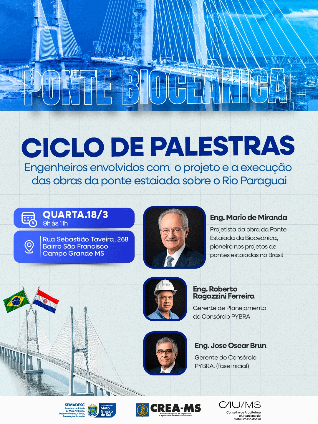 Crea-MS sedia ciclo de palestras com engenheiros da Ponte Internacional da Rota Bioceânica
