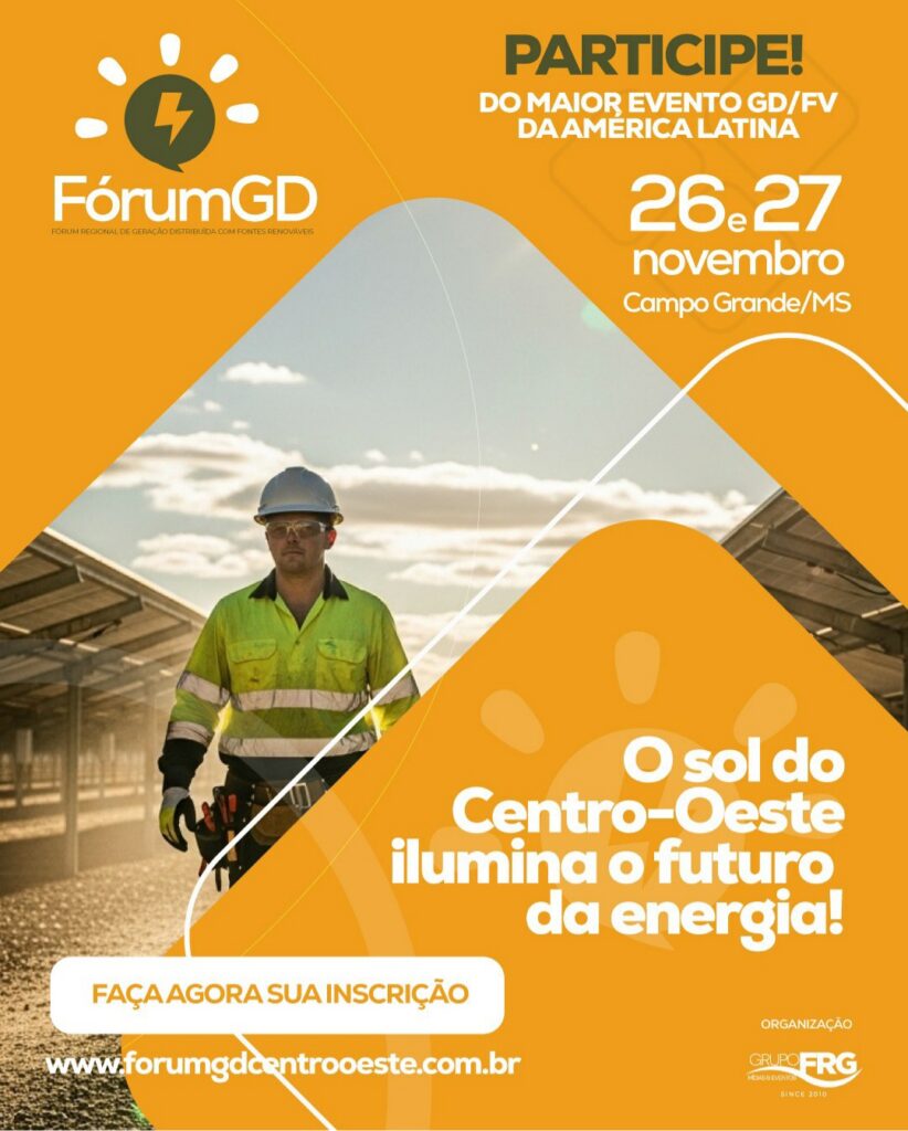 Nos dias 26 e 27 de novembro, Campo Grande será sede do 30º Fórum Regional de Geração Distribuída edição da Região Centro-Oeste (Fórum GD Centro-Oeste). O encontro conta com debates sobre desafios, tendências e oportunidades da geração distribuída, com foco em inovação, tecnologia e expansão do setor solar fotovoltáico no Brasil e no mundo.